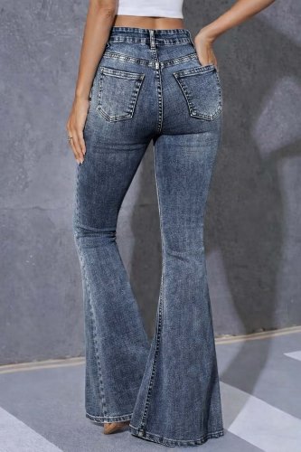• Kadın yüksek bel fermuarlı İspanyol paçalı kot pantolon
